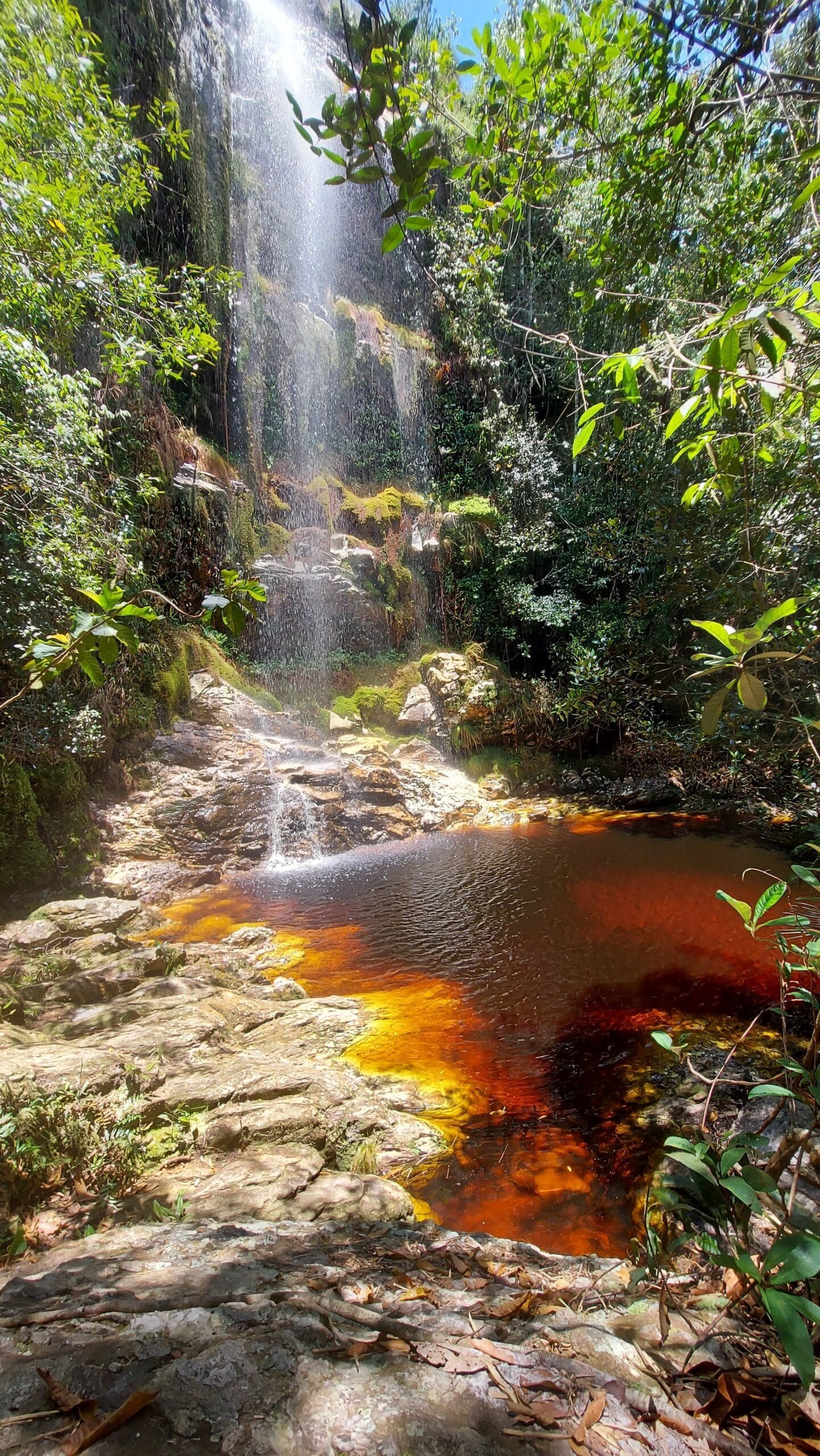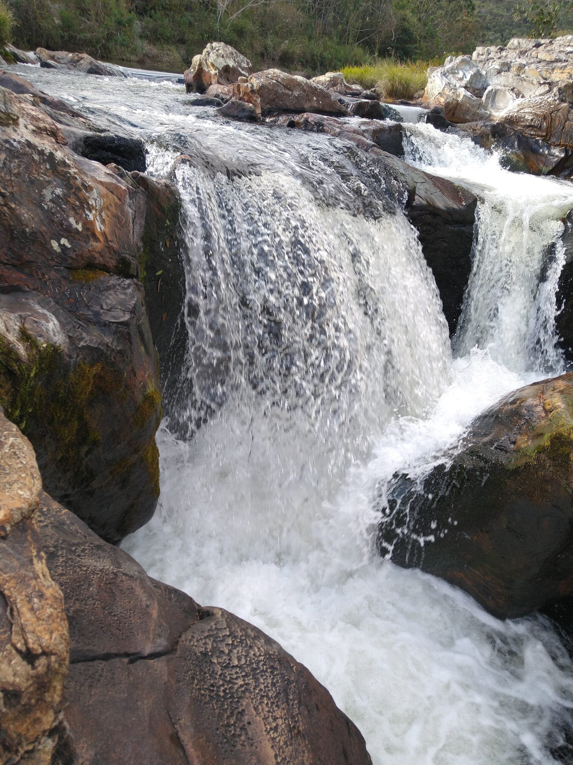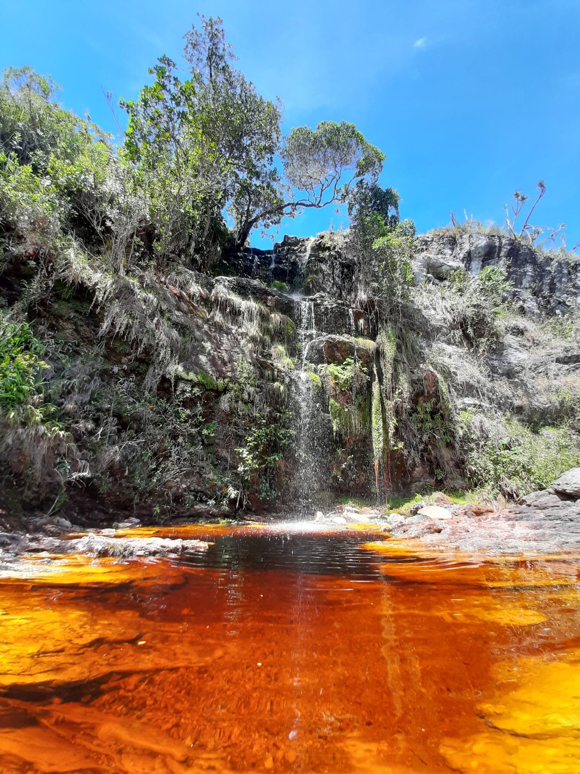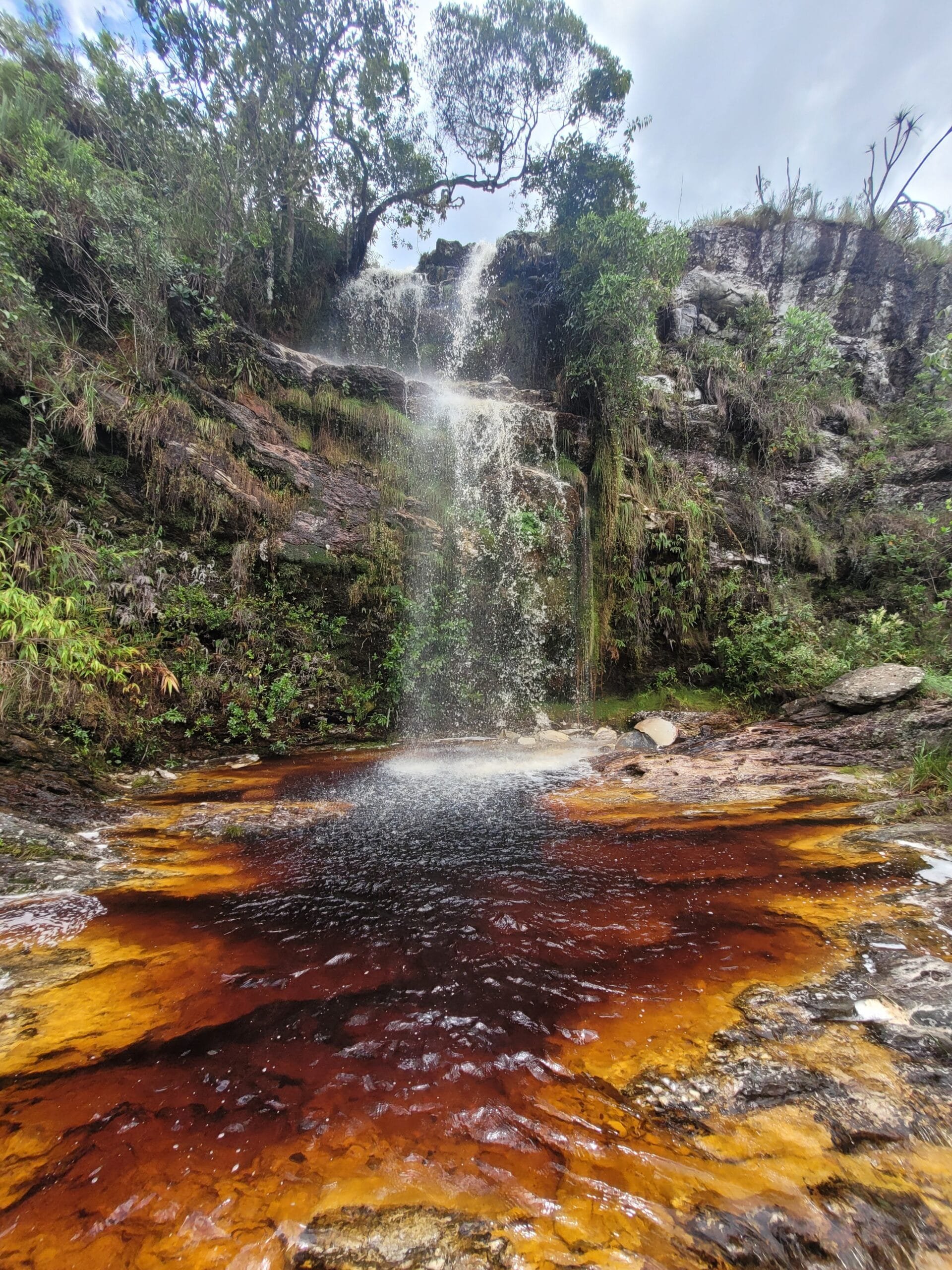 A Cachoeira da Coca-Cola, também conhecida como Cachoeira de Dois Córregos, chama atenção pela coloração mais escura da água, causada pela presença de minerais e matéria orgânica natural da região. Essa característica é comum em áreas de mata preservada e não compromete a qualidade da água.