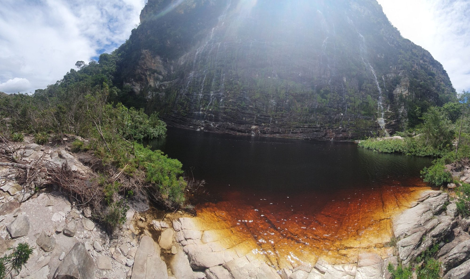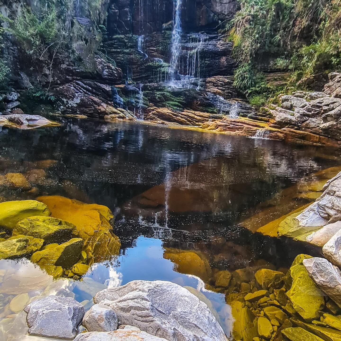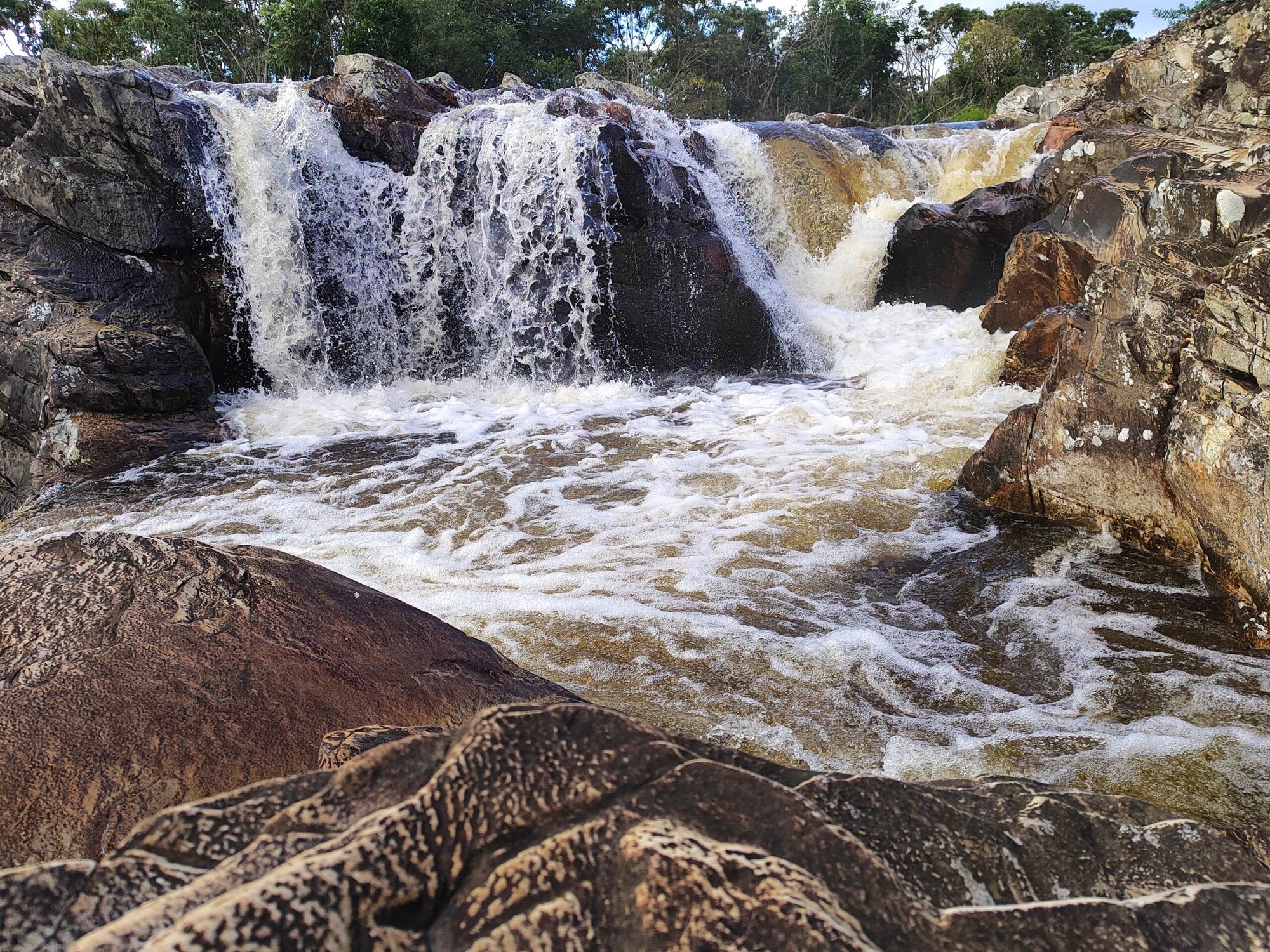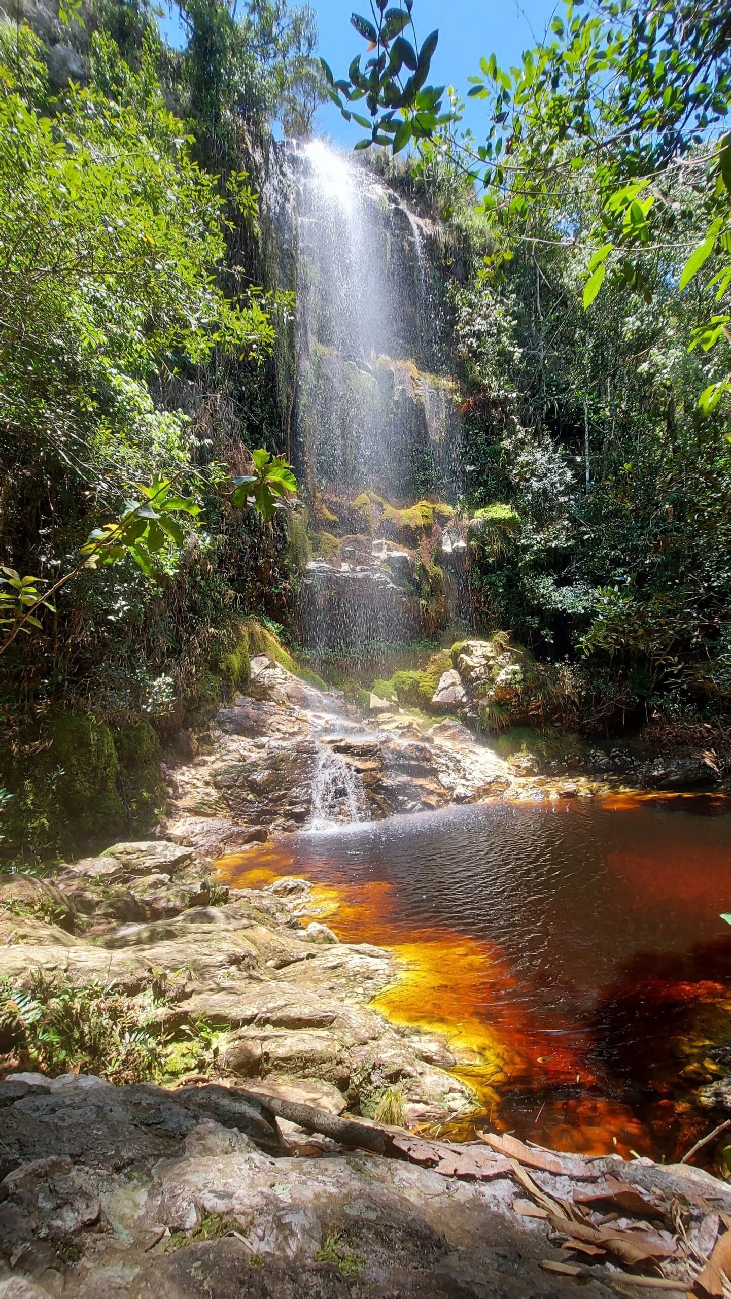 A Cachoeira da Coca-Cola, também conhecida como Cachoeira de Dois Córregos, chama atenção pela coloração mais escura da água, causada pela presença de minerais e matéria orgânica natural da região. Essa característica é comum em áreas de mata preservada e não compromete a qualidade da água.